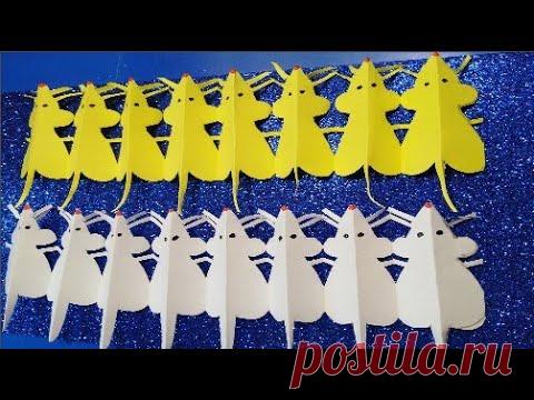 символ 2020 МЫШЬ ГИРЛЯНДА СВОИМИ РУКАМИ. Как сделать Новогоднюю гирлянду из бумаги. идеи декор DIY.