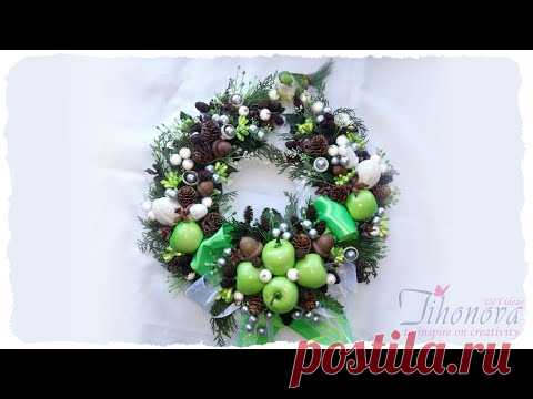 DIY 2020: НОВОГОДНИЙ ВЕНОК на дверь с шишками, желудями и ветками. Мастер-класс Алены Тихоновой!