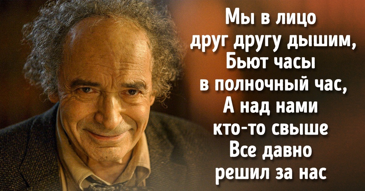 10 душевных стихотворений Валентина Гафта, которые попадают в самую точку 2 сентября Валентину Иосифовичу Гафту исполнится 84 года. Многие знают его как председателя Сидорина из фильма «Гараж» или полковника Покровского из картины «О бедном гусаре замолвите слово». Но мы хотим напомнить еще об одной стороне таланта актера — его поэтическом даре.