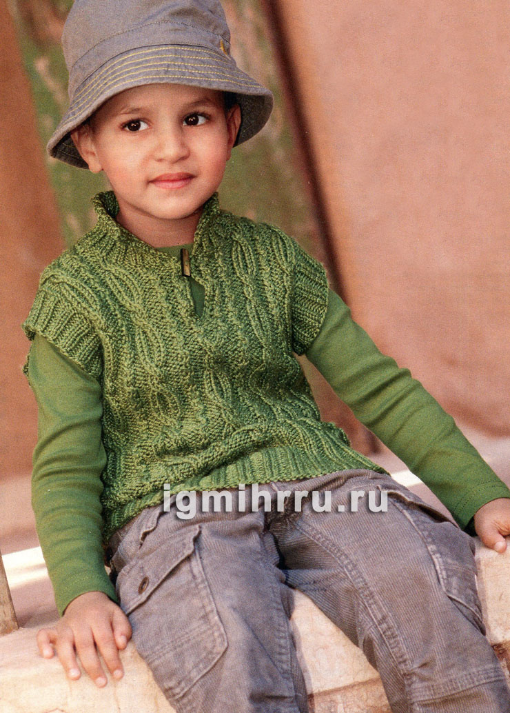 ДЛЯ МАЛЬЧИКА 1,5-9 ЛЕТ. ЗЕЛЕНАЯ БЕЗРУКАВКА С «КОСАМИ»