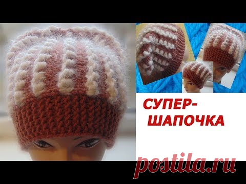 Тепла гарна модна шапочка спицями.Beautiful hat knitting.
