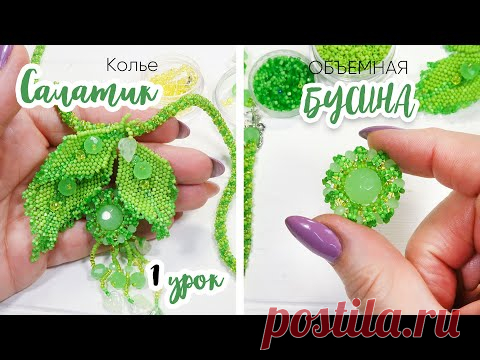 Объемная БУСИНА из бисера и бусин. 1 Урок - Колье "Салатик" ☘️