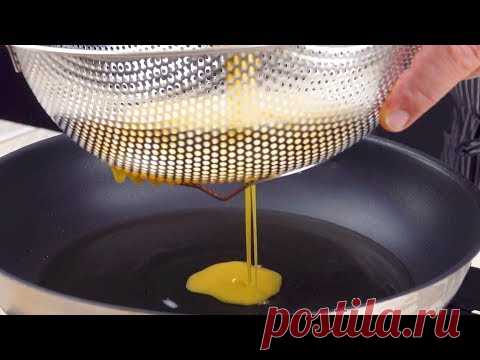 Пропускаем яйца через сито на сковороду. Вкуснейший завтрак за 5 минут!