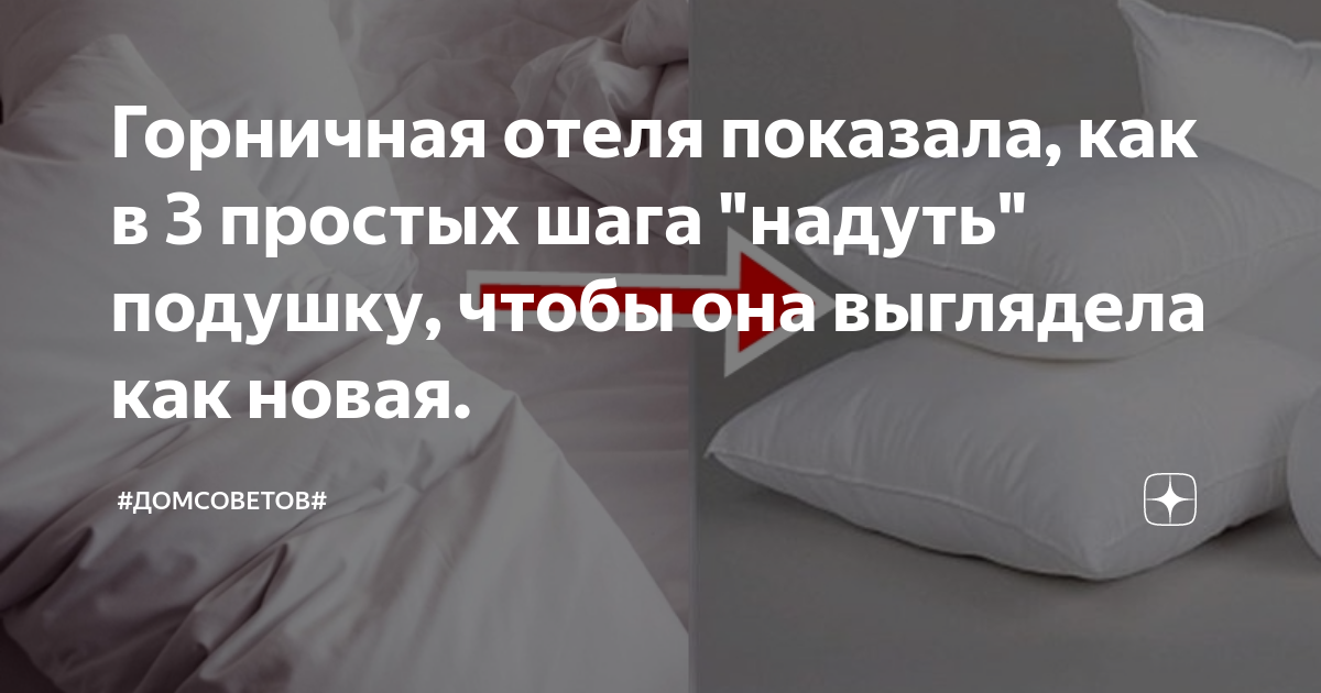 Горничная отеля показала, как в 3 простых шага "надуть" подушку, чтобы она выглядела как новая. Каждый раз, я удивляюсь как в номерах отелей и гостиниц, с огромным потоком людей, постельные принадлежности всегда воздушные и выглядят ,как только что из новой упаковки. Сегодня я вам и расскажу, в чем же секрет. Совет мне дала горничная, когда я пожаловалась,что мои подушки дома просто как лепешки,хоть и новые, а в отелях после бесконечных стирок, как пушинки. После долгого и постоянного
