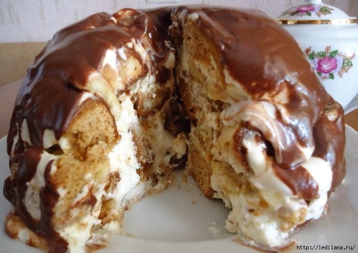 Торт без выпечки: из бананов, пряников и сметаны