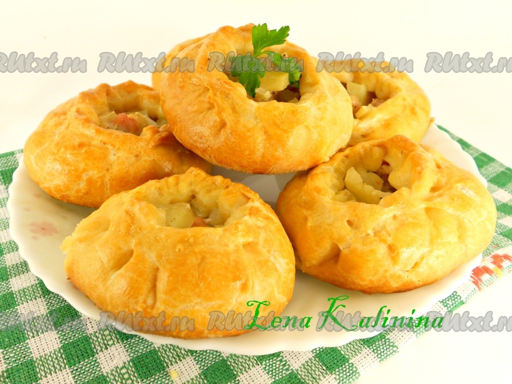- В глубокую миску просеять муку. Добавить кусочки холодного сливочного масла или маргарина. Руками перетереть масло с мукой до крошки. Посолить немного. В кефир (комнатной температуры) добавить соду и интенсивно перемешать, чтобы появилось шипение. Таким образом сода гасится в кефире. В масляно-мучную крошку влить кефир с гашеной содой и замесить тесто, которое должно быть мягким, нежным, но не липнущим ни к столу, ни к рукам. Тесто скатать в шар, завернуть в пищевую пленку и оставить при комнатной температуре на 30 минут. Приготовить начинку: мясо и сырой картофель порезать маленькими кубиками. Добавить измельченный репчатый лук. Все посолить, поперчить и перемешать. "Отдохнувшее" тесто разделить на 9 одинаковых частей, скатать в шарики. Каждую часть раскатать в лепешку размером с блюдце. На середину лепешки поместить 1-1,5 столовых ложки начинки. Соединить кверху края по типу формовки хинкали, оставляя вверху небольшое отверстие. Выложить вак балиш на противень, застеленный пергаментом. Яйцо взбить и хорошо им смазать пирожки. Выпекать пирожки в разогретой до 180 градусов духовке 20 минут, после чего достать и влить в отверстия по 1-1,5 столовых ложки бульона (Если есть куриный, говяжий бульон, можно использовать его. Если нет - в воду добавить сливочное масло, соль, довести до кипения. Проварить 2-3 минуты, снять с огня.). Снова отправить пирожочки в духовку, запекать еще 40 минут при той же температуре. Вкуснейшие пирожки "Вак балиш" подать в горячем виде с бульоном или просто со сладким чаем. Ну очень вкусно! Вак балиш можно взять с собой на работу, можно дать ребенку с собой в школу. Обязательно попробуйте! Приятного Вам аппетита!