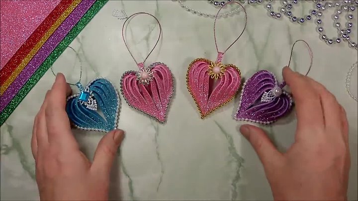 Ёлочные игрушки из фоамирана, сердечко своими руками - diy christmas ornaments  glitter foam heart