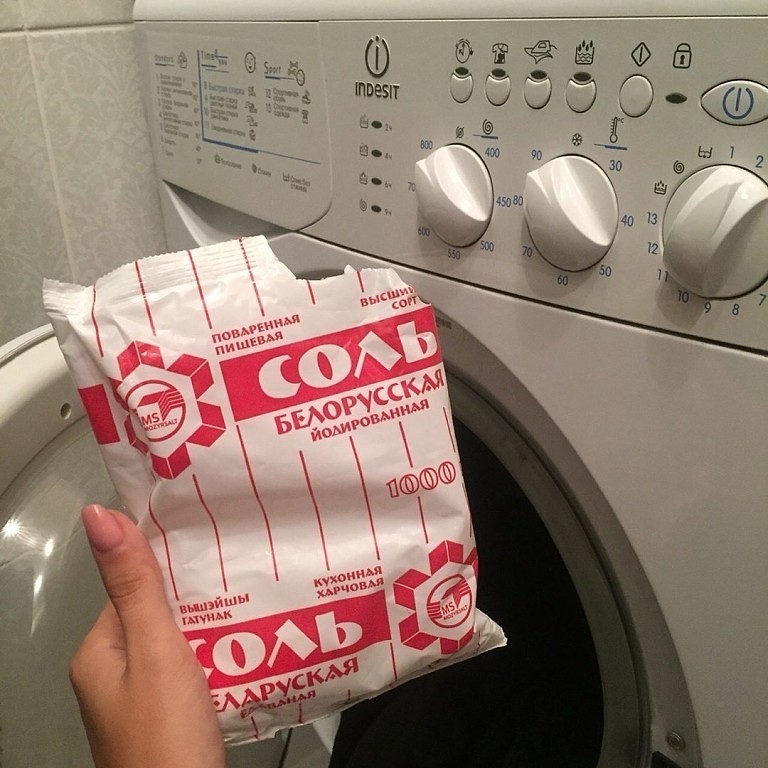 Перед тем как включить стиральную машинку просто добавьте немного соли. Эффект потрясающий!