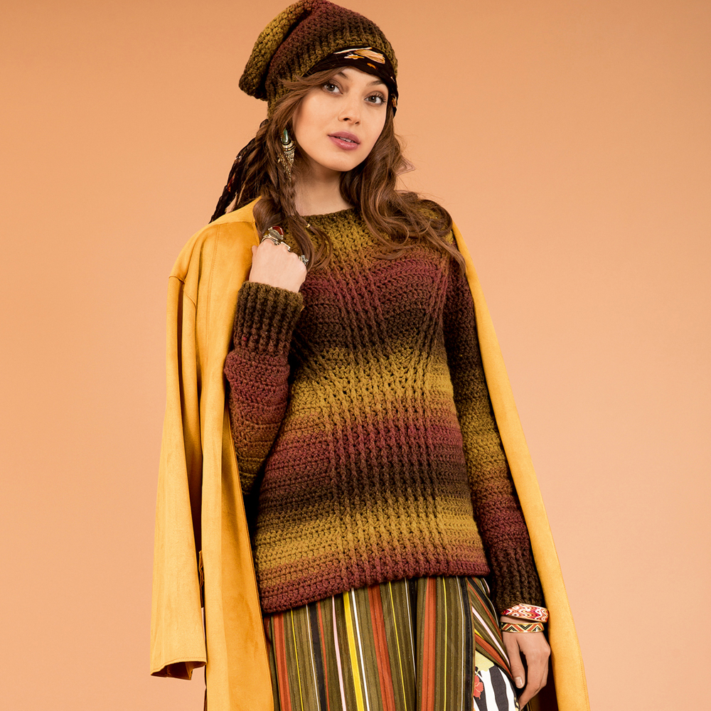 Джемпер в осенней гамме из пряжи секционного крашения. Крючком. / Verena.ru