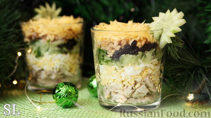 Рецепт: Слоёный салат "Негреско" с курицей и черносливом на RussianFood.com