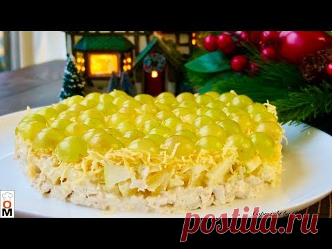 Праздничный Салат к Новогоднему столу - YouTube Рецепт: Ананасы консервированные 7-8 колечек Куриная грудка 250 гр Перец , соль по вкусу Яблоко зелёное 1 шт Сыр 100 гр Виноград 150 гр Майонез по вкусу