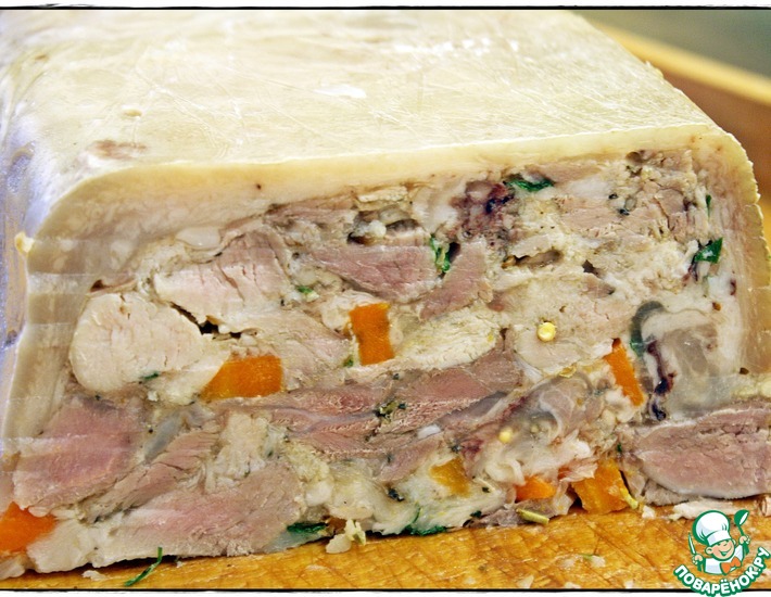 - Я оставил в холодильнике на ночь. Утром достал вот такую красоту. Из формы закуска вынимается без проблем, очень хорошо нарезается тонкими ломтиками, а самое главное - очень вкусная, небольшая себестоимость, отличнейшая замена магазинным колбасным изделиям и ты знаешь что ешь!!!