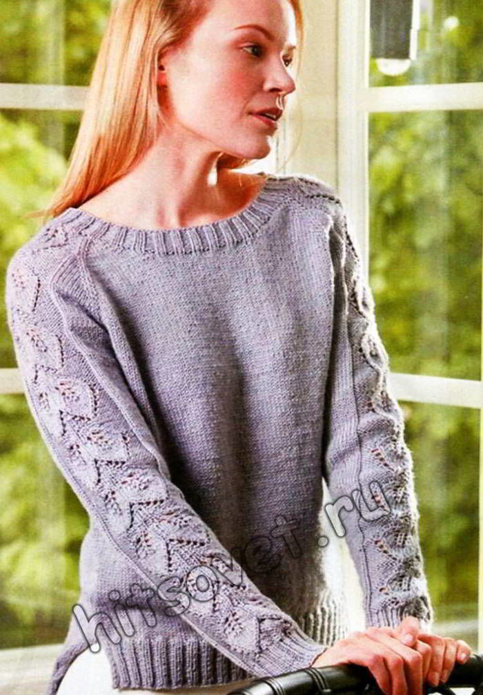 Вязание спицами для женщин пуловера реглан с красивыми ажурными рукавами со схемой и пошаговым бесплатным описанием вязания.