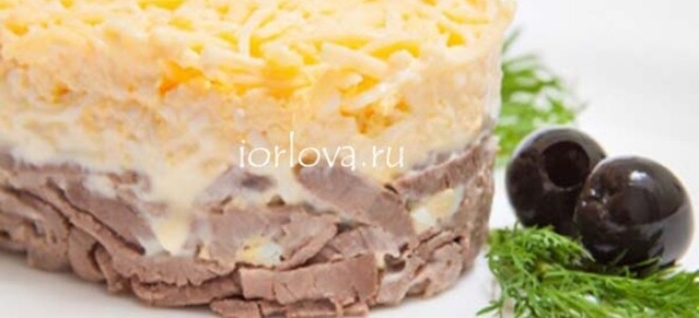Салат мужские слезы с: курицей, сыром, корейской морковью, грибами