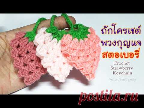 ถักโครเชต์พวงกุญแจสตอเบอรี่ Crochet Strawberry Keychain