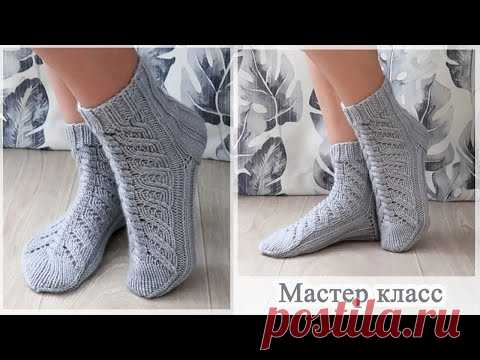 Легкие и простые носки спицами с косой и ажуром Мастер класс