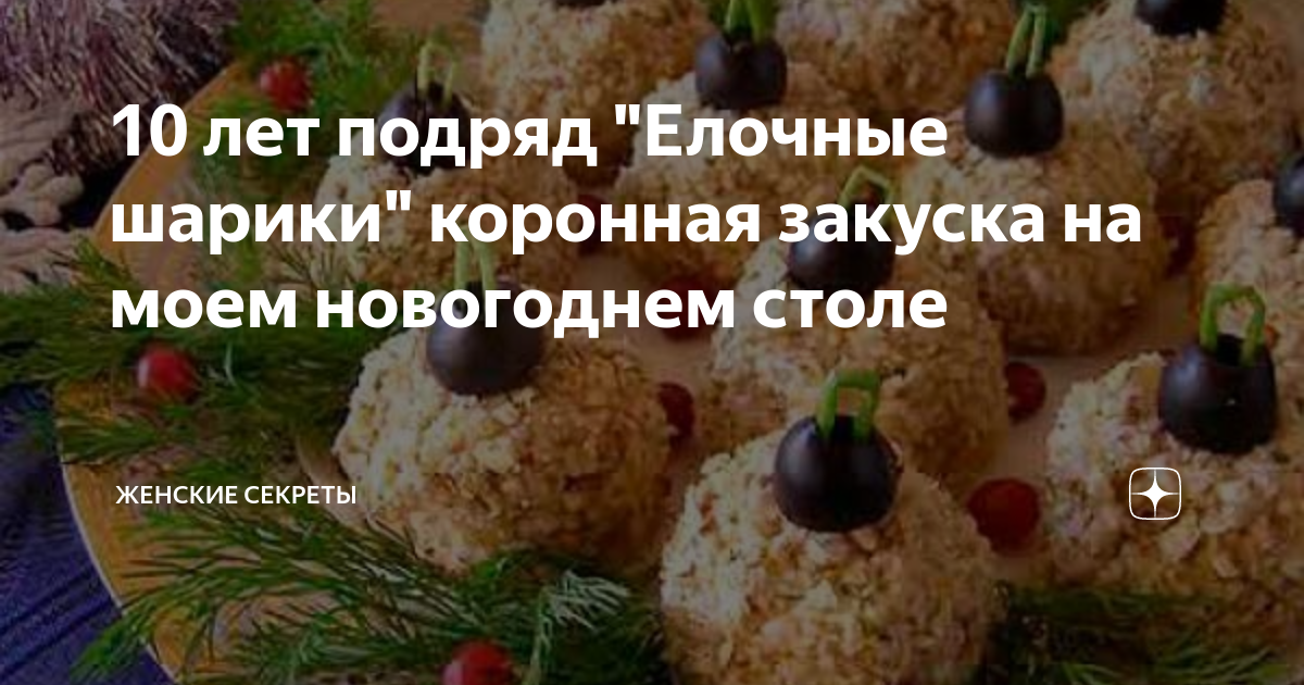 10 лет подряд "Елочные шарики" коронная закуска на моем новогоднем столе Уже 10 лет подряд готовлю эту простую и вкусную закуску под названием "Елочные шарики" на новогодний стол. Гостям и моей семье нравится.