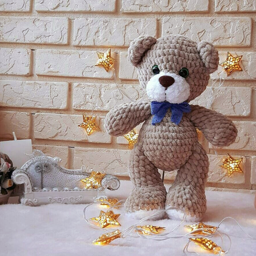 PDF Мишка Бантик крючком. FREE crochet pattern; Аmigurumi doll patterns. Амигуруми схемы и описания на русском. Вязаные игрушки и поделки своими руками #amimore - медведь, маленький медвежонок из плюшевой пряжи, плюшевый мишка.