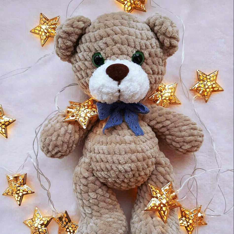 PDF Мишка Бантик крючком. FREE crochet pattern; Аmigurumi doll patterns. Амигуруми схемы и описания на русском. Вязаные игрушки и поделки своими руками #amimore - медведь, маленький медвежонок из плюшевой пряжи, плюшевый мишка.