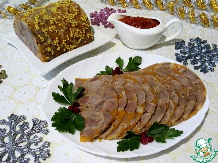 - Нарезается очень тонко, не распадается и очень вкусно. Подавать можно с горчицей (субпродукты очень с ней дружат) или с любым соусом на ваш вкус. У меня острый чесночно-томатный соус. Приятного аппетита и всех с Наступающим Новым годом!!! Счастья, здоровья и благополучия вам и вашим родным!!!