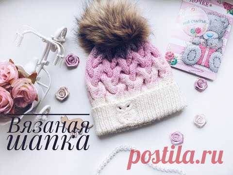 Вязаная шапка спицами// С совой на отвороте// Градиентом//МК