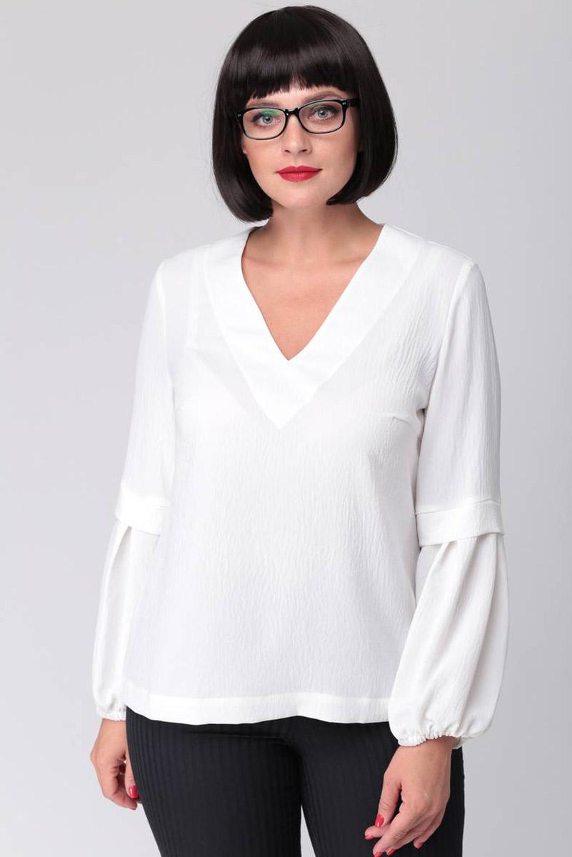 Блузка Mali, молочный (модель 620) — Белорусский трикотаж в интернет-магазине «Швейная традиция» Блузка женская свободного силуэта. Вырез горловины V-образный, обработан широкой обтачкой. Полочка с нагрудными вытачками.