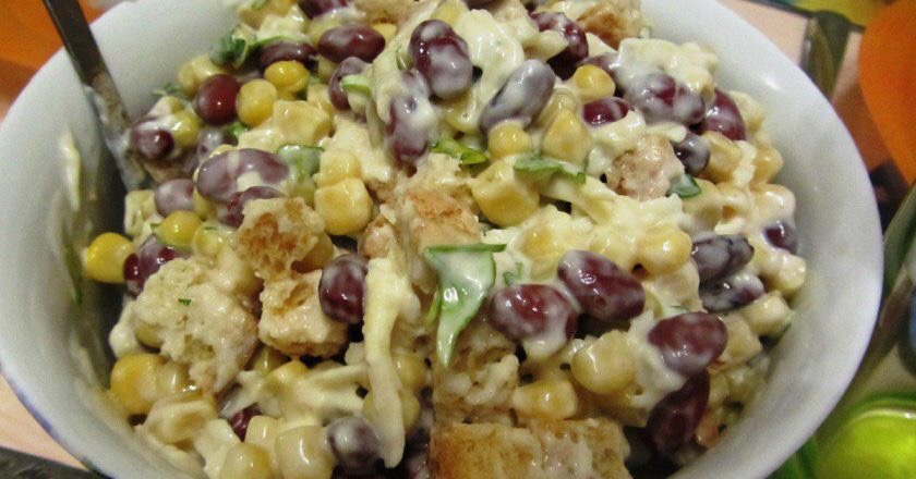 Обалденный салатик с фасолью и сухарями