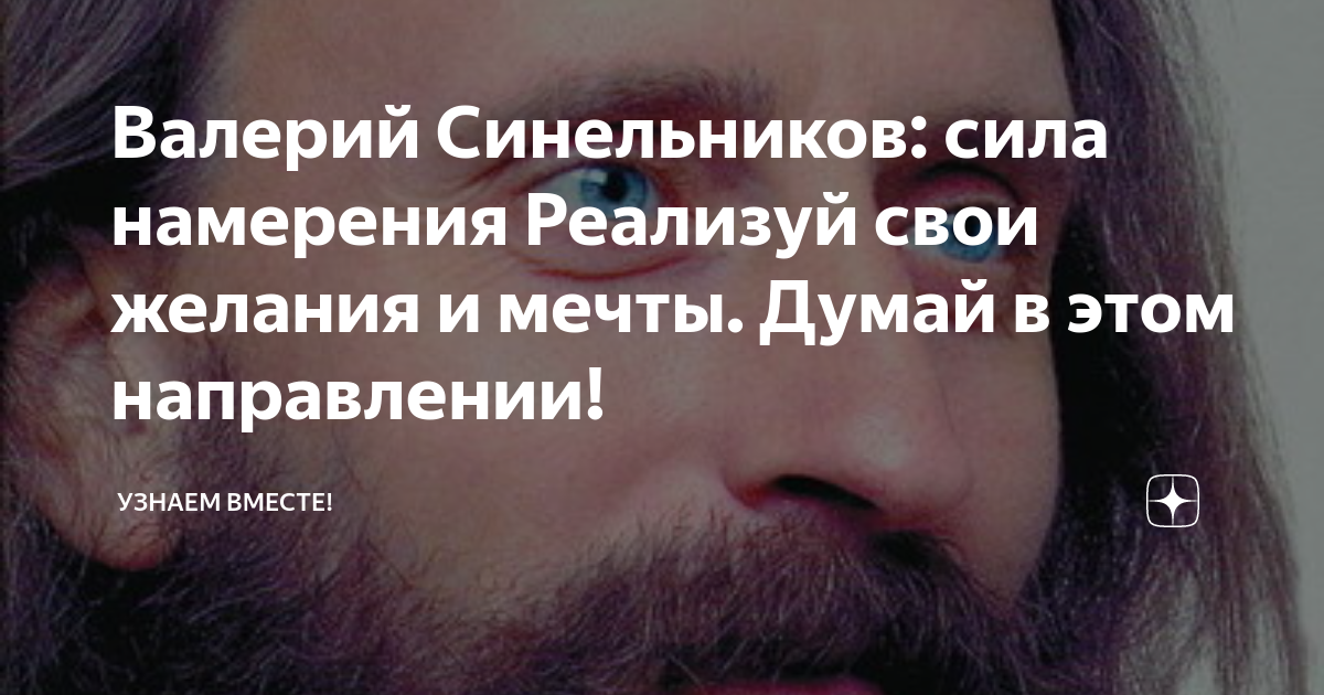 Валерий Синельников: сила намерения Реализуй свои желания и мечты. Думай в этом направлении! Наверное, каждый русский человек хоть раз, но слышал имя Валерия Синельникова. Это гениальный врач-гомеопат, писатель и автор весьма популярных книг по изучению собственного подсознания. Его книги - это кладезь знаний, с которыми можно, и даже нужно работать. Книга Синельникова "Возлюби болезнь свою" стала настоящим бестселлером. Я тоже по его методу лечила свою болезнь.