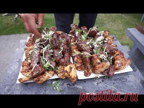 Очень сочный и вкусный шашлык из говяжьего филе с овощным салатом. Рецепт от Жоржа