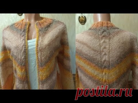 кардиган из секционной пряжи спицами