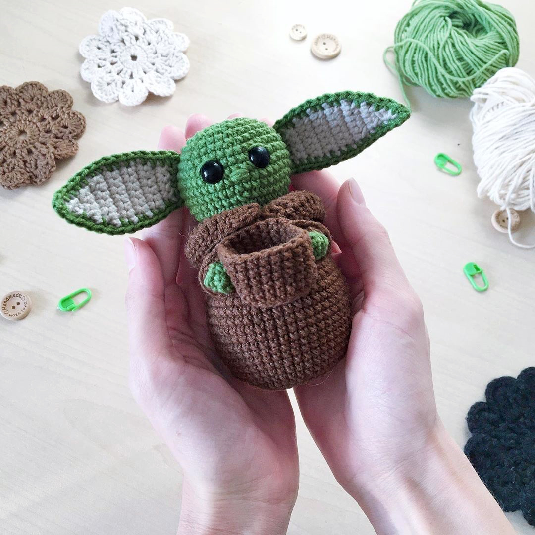 PDF Бейби Йода крючком. FREE crochet pattern; Аmigurumi doll patterns. Амигуруми схемы и описания на русском. Вязаные игрушки и поделки своими руками #amimore - yoda baby, Star Wars: The Mandalorian, Звёздные войны: Мандалорец.