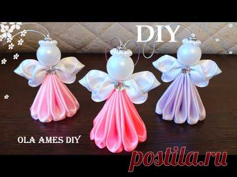 DIY Ribbon Angel 😇 АНГЕЛ ИЗ ЛЕНТ/ Kanzashi Angel/ Satin Ribbon Christmas Angel Ornaments/ Ola ameS