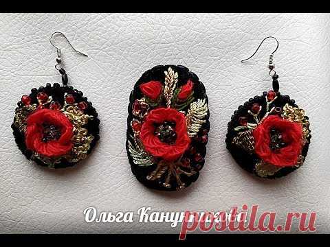 Серьги с вышивкой мака Часть 1. Poppy embroidered earrings.Part 1