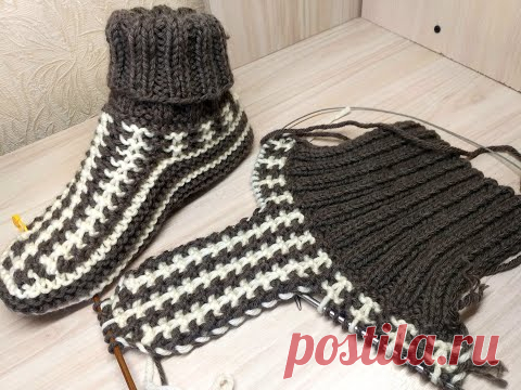 ТАПОЧКИ-НОСКИ на 2 спицах. Вяжем вместе.
