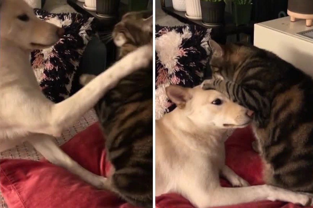 Умоляющий кота о поцелуях пес попал на видео и влюбил в себя весь интернет. Ридус