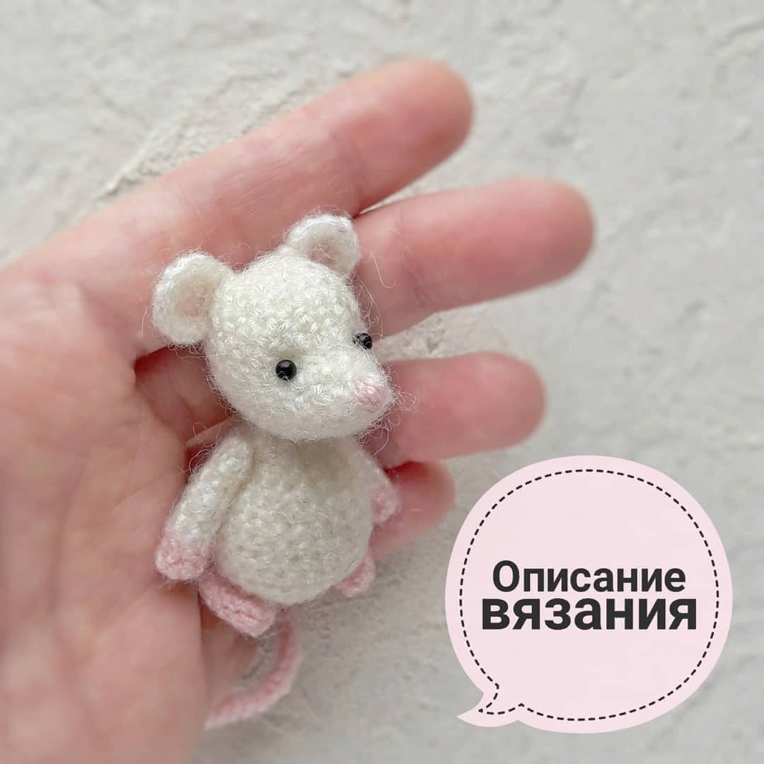 Мышка. Описание вязания от @gurumiland . У меня пряжа Ализе Реал 40, крючок 1 . Обозначения. КА - кольцо амигуруми вп - воздушная петля сс - соединительный столбик сбн - столбик без накида пр - прибавка уб - убавка . Вяжем пряжей двух цветов - белой (или молочной) и розовой. Не забываем набивать мышку по ходу вязания. . Голова (белая) 1. 4сбн в КА (4) 2. 4пр (8) 3. (пр, сбн)*4 (12) 4. (пр, 2сбн)*4 (16) 5. (пр, 3сбн)*4 (20) 6.-10. 20 сбн (5рядов) (20) ...