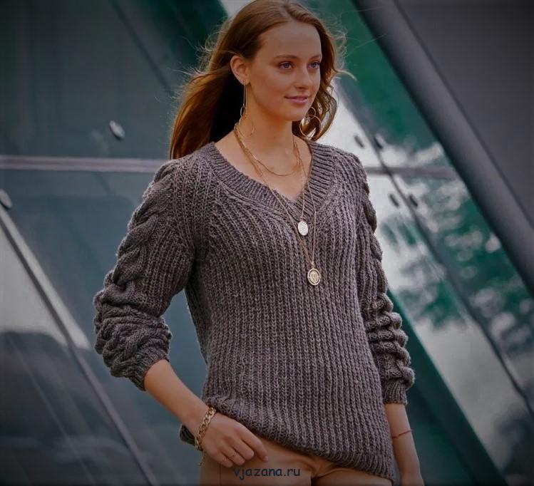 Пуловер английской резинкой с косами | Вязана.ru