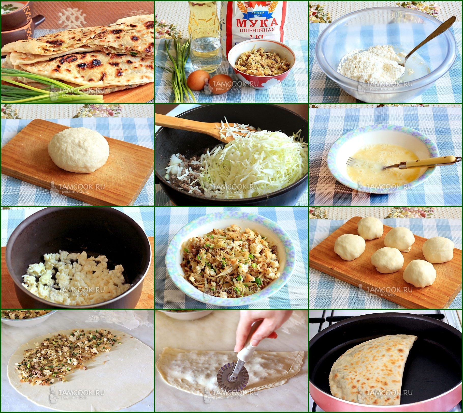 ЛЕПЕШКИ С НАЧИНКОЙ НА СКОВОРОДЕ Рецепт вкуснейших лепешек с начинкой из мясного фарша, яйца и капусты на сковороде. Тесто: Вода - 200 мl Соль - 0.5 ч.л. Масло растительное - 3 ст.л. Мука - 400 г Начинка: Фарш - 150 г Капуста - 250 г Лук репчатый - 1 шт. Яйцо - 2 шт. Лук зеленый - 1 пучок Масло растительное - 3 ст.л. Соль Перец Чеснок Зелень Сливочное масло - для смазки лепешек