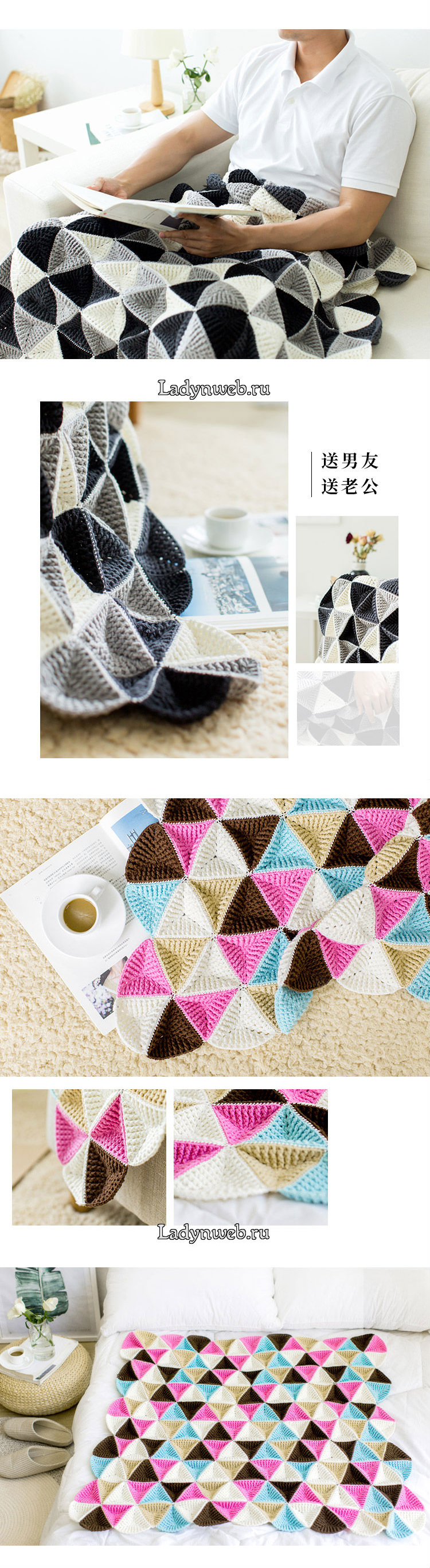 Плед из треугольных мотивов крючком схема | Ladynweb.ru