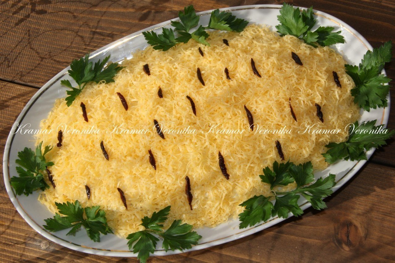 Салат "Берёзка" Нам потребуется: куриная грудка 2 шт яйцо 4 шт картофель 4 шт шампиньоны свежие 400 гр сыр 100 гр майонез соль по вкусу для украшения: зелень чернослив Куриные грудки сварить. Грибы намыть под проточной водой, порезать и обжарить на растительном масле до готовности. Яйца и картофель сварить. Салат выложить слоями. Картофель натереть на крупной тёрке и выложить первым слоем, посолить и смазать майонезом. Куриную грудку мелко нарезать или порвать на волокна...