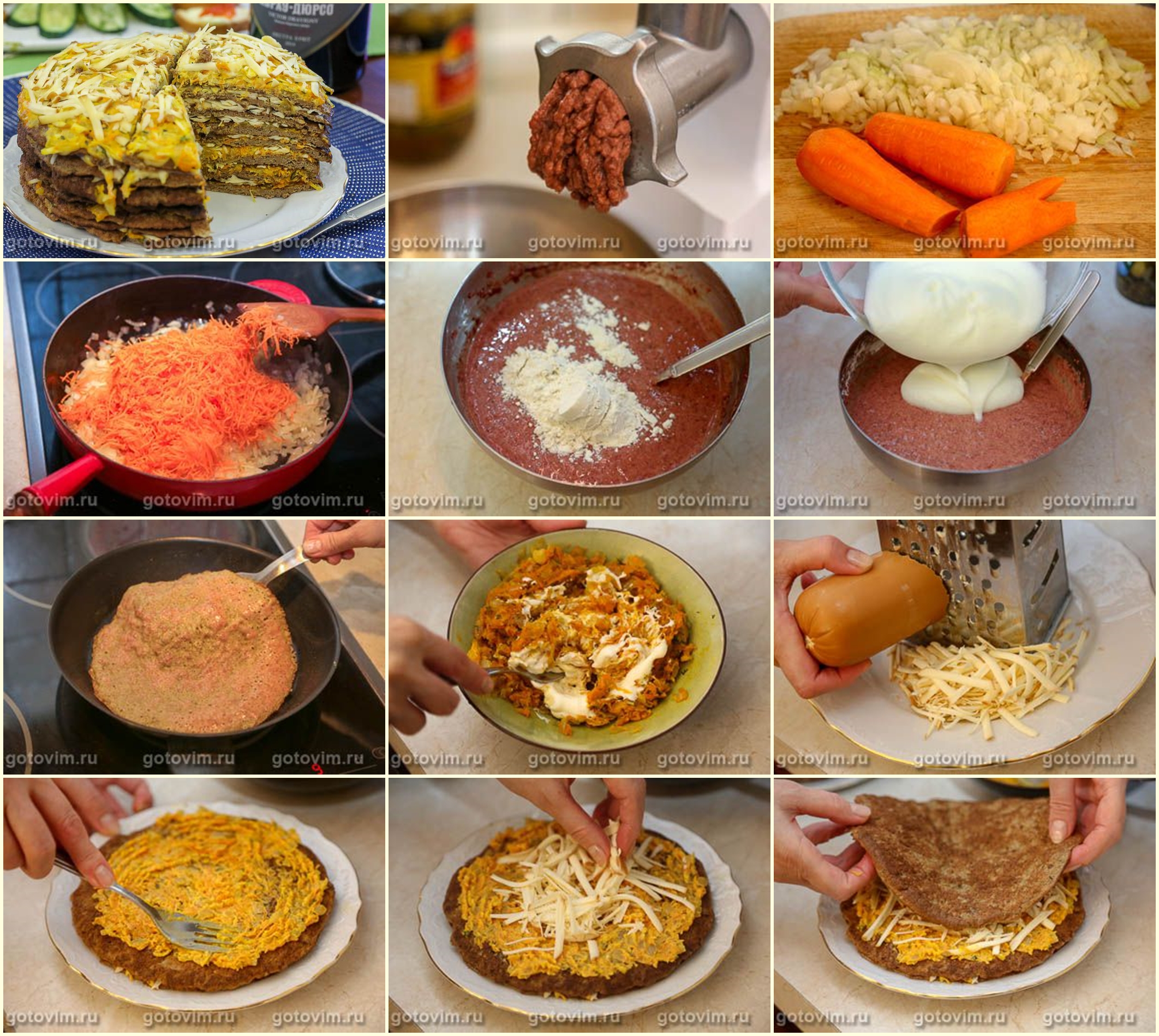 - Накрыть следующим печеночным блином и повторить все сначала. Чередовать печеночные коржи и начинки, пока не закончатся все составляющие. Верх готового печеночного торта смазать овощной начинкой и украсить тертым копченым сыром. После сборки печеночного тортика с сырной начинкой обязательно дать ему настояться в холодильнике несколько часов или всю ночь, чтобы он хорошо пропитался и стал сочным. Печеночный торт с копченым сыром порезать ломтиками и подавать на стол. Приятного аппетита!