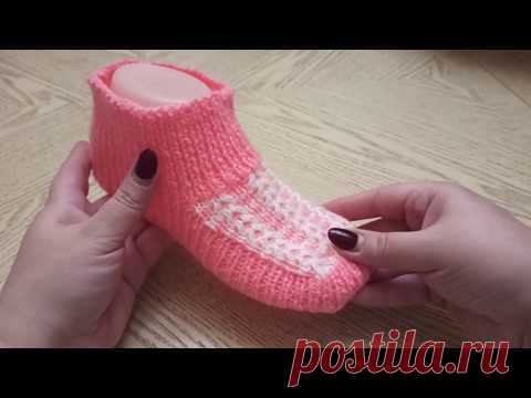 Простые и удобные тапочки следки на двух спицах без шва.