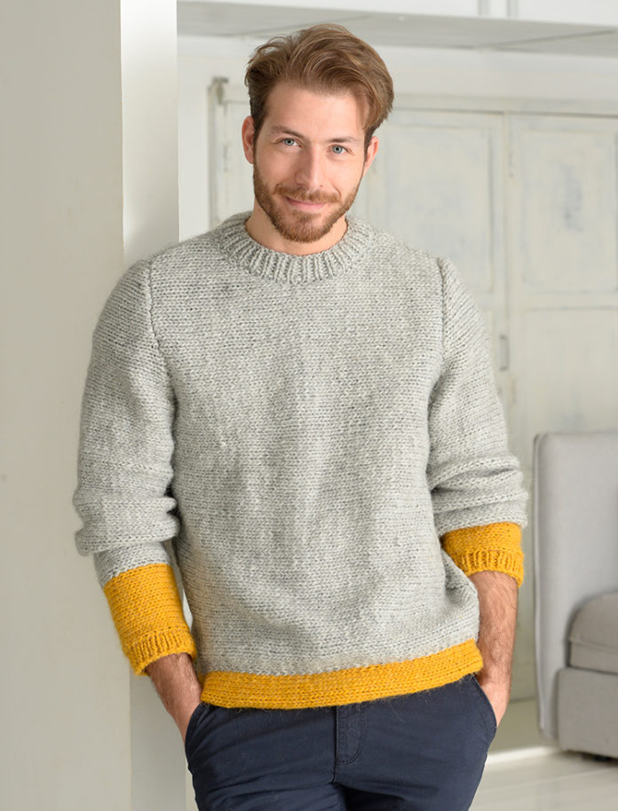 Мужской пуловер спицами с контрастной вставкой на рукавах - Портал рукоделия и моды
