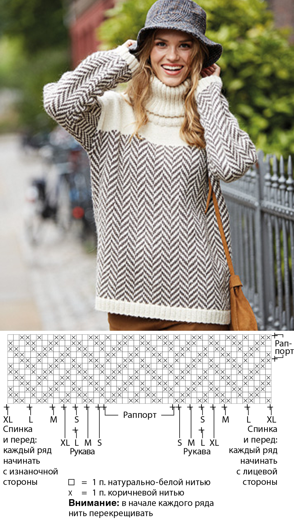 Свитер с узором в «Елочку» - схема вязания спицами с описанием на Verena.ru