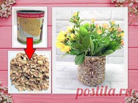 ИДЕЯ🥫ВАЗА ИЗ СТАРОЙ ЖЕСТЯНОЙ БАНКИ И ФИСТАШЕК своими руками🥫Вторая жизнь ненужных вещей🥫