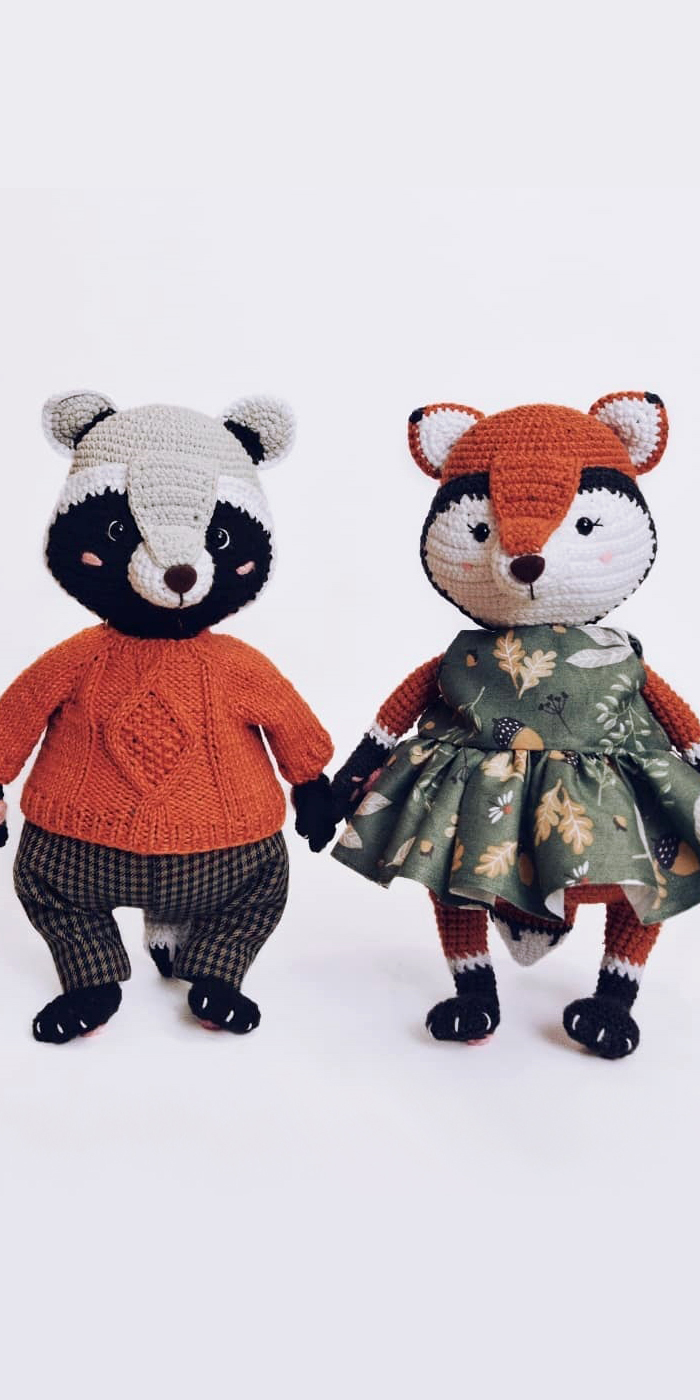 PDF Енот Афоня и лиса Анфиса крючком. FREE crochet pattern; Аmigurumi doll patterns. Амигуруми схемы и описания на русском. Вязаные игрушки и поделки своими руками #amimore - енот, лиса, лисица, лисёнок, лисичка, енотик.