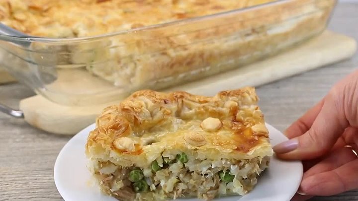 Пирог из Готового Слоёного Теста с Рыбными Консервами и Рисом
