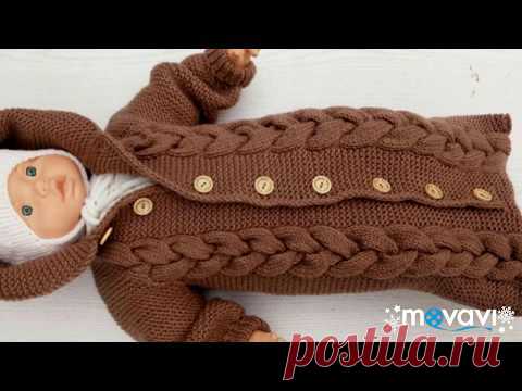 Конверт "Мишка" для новорожденного спицами. 1 часть