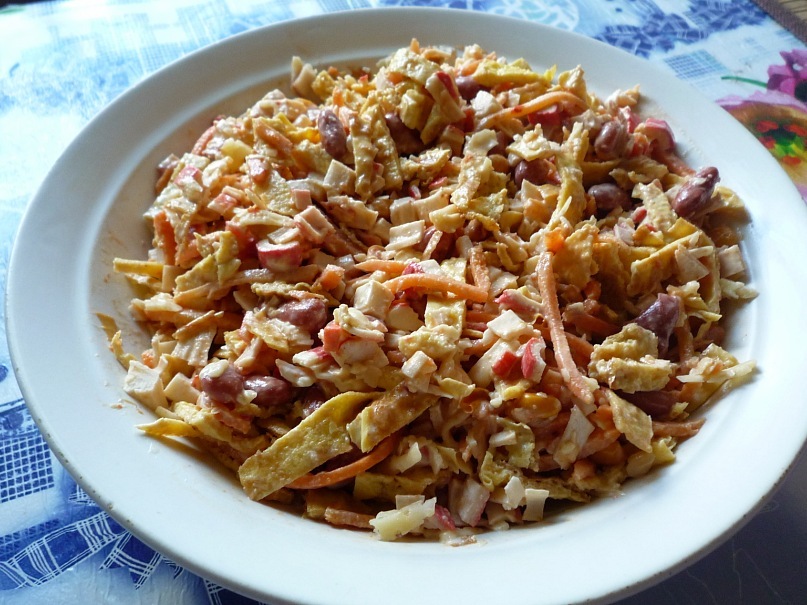 САЛАТ БЛИННЫЙ С КУРИЦЕЙ: ИНГРЕДИЕНТЫ, РЕЦЕПТ С ФОТО, ОСОБЕННОСТИ ПРИГОТОВЛЕНИЯ