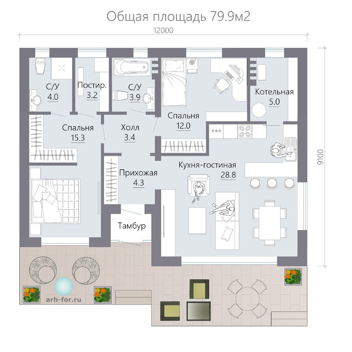 Проект дома 79,9м2 с котельной | Arh-For готовые проекты | Яндекс Дзен